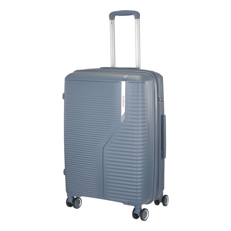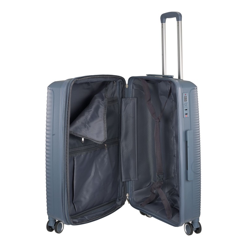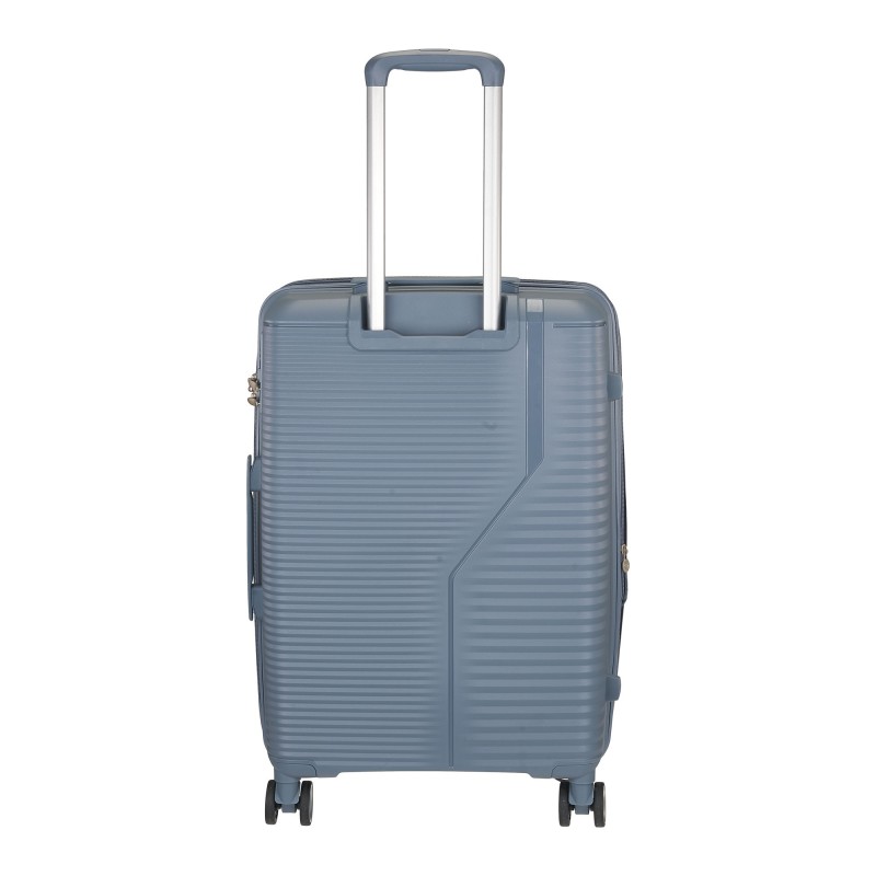 Bαλίτσα μεσαία επεκτεινομενη με  4 τροχούς και πλαϊνή λαβή για κράτημα στο χέρι.  Διαθέτει πτυσσόμενη λαβή από αλουμίνιο για μεταφορά με κουμπί ασφαλείας. Εσωτερικά έχει ευρύχωρες κύριες θέσεις με εσωτερική τσέπη με φερμουάρ και ειδικό ιμάντα συγκράτησης αποσκευών. Διαθέτει κλειδαριά TSA με συνδυασμό.