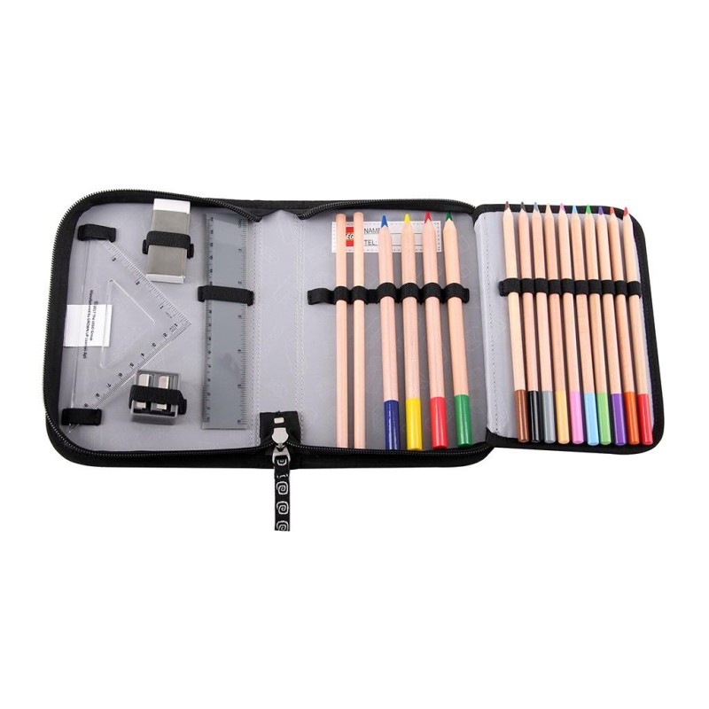 1.Ημίδιπλη κασετίνα με μεγάλη χωρητικότητα για όλη την απαραίτητη γραφική ύλη που ταιριάζει με τη LEGO® τσάντα της επιλογής σας 2. Έξυπνη κατασκευή με φερμουάρ από αδιάβροχο πολυέστερα ανθεκτικό στη βρωμιά 3.Μεγάλος αποθηκευτικός χώρος και θέσεις για ξυλομπογιές, μαρκαδόρους, γόμα, ξύστρα, χάρακα και τρίγωνο 4.Περιλαμβάνει καρτελάκι ονόματος για ταυτοποίηση και πλαστική θήκη για σχολικό πρόγραμμα
