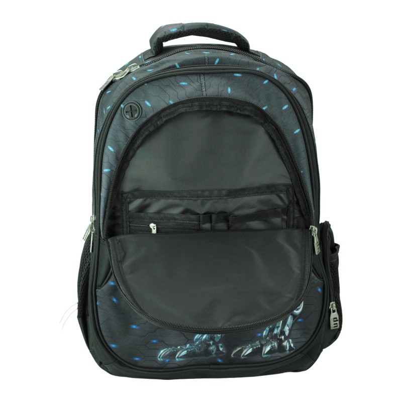 Σακίδιο Πλάτης δημοτικού Δύο κεντρικές θέσεις και μία επιπλέον μπροστινή με εσωτερική θήκη οργάνωσης Θήκη για laptopΑνατομική πλάτηΠλαϊνές θήκες για παγούριαΕνισχυμένοι ιμάντες πλάτης με αντανακλαστικά ρέλιαΕλαστικός ιμάντας στήθους Ενισχυμένη λαβή χειρόςΕπένδυση με φόδρα.