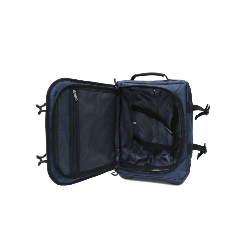 Βαλιτσάκι καμπίνας σε διαστάσεις για προσωπικό αντικείμενο για όλες τις low cost αεροπορικές εταιρίες. Κατασκευασμένο από ανθεκτικό πολυεστερικό ύφασμα,με 2 εσωτερικούς γωνιακόυς τροχούς ,εξωτερική τσέπη γρήγορης πρόσβασης και στιβαρό πτυσσόμενο μπαστούνι για άνετη μεταφορά.